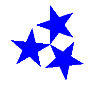 Verwende deinen Befehl um drei blaue Sterne zu zeichnen.
