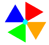 Auch Farbnamen können als Parameter verwendet werden. Definiere einen Befehl, dreieck(farbe), welche ein gefülltes Dreieck mit der gegebenen Farbe zeichnet. Erstelle damit das nebenstehende Bild.